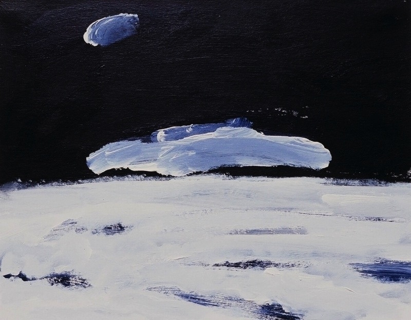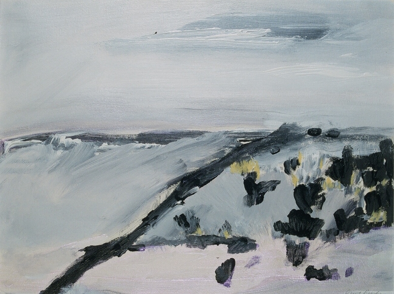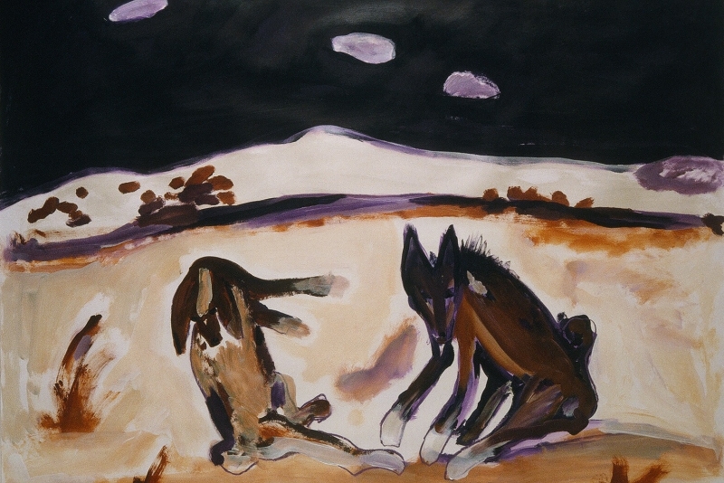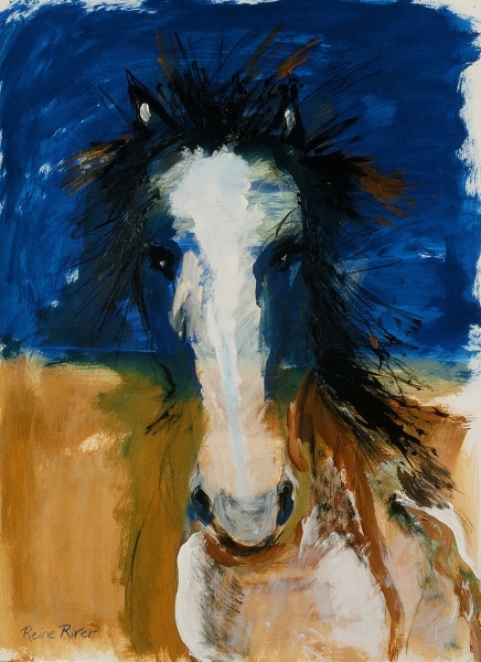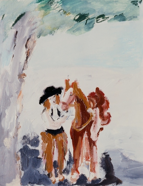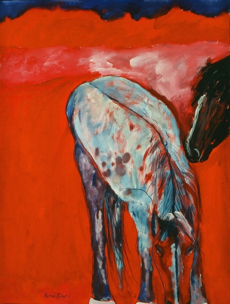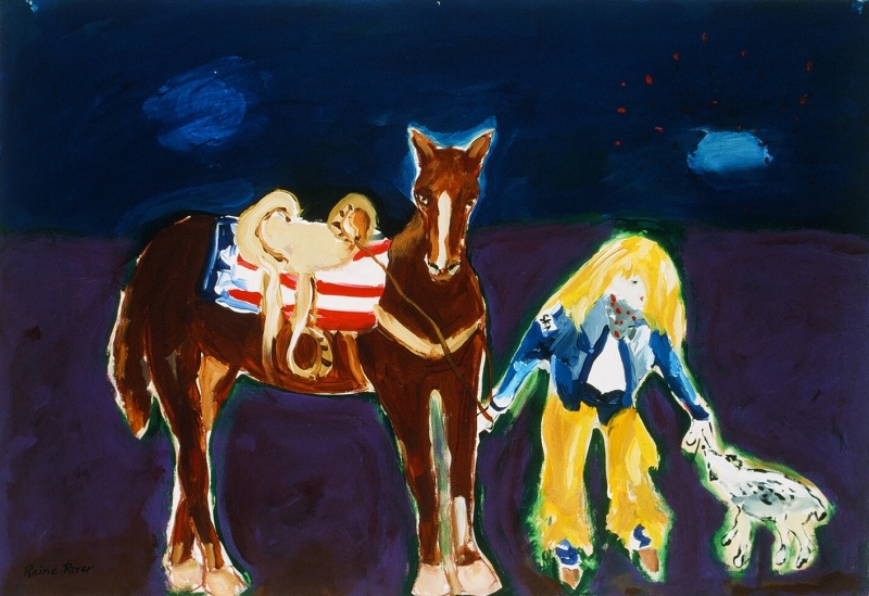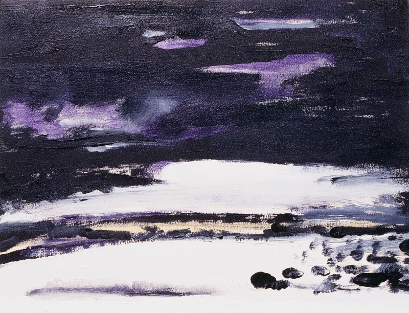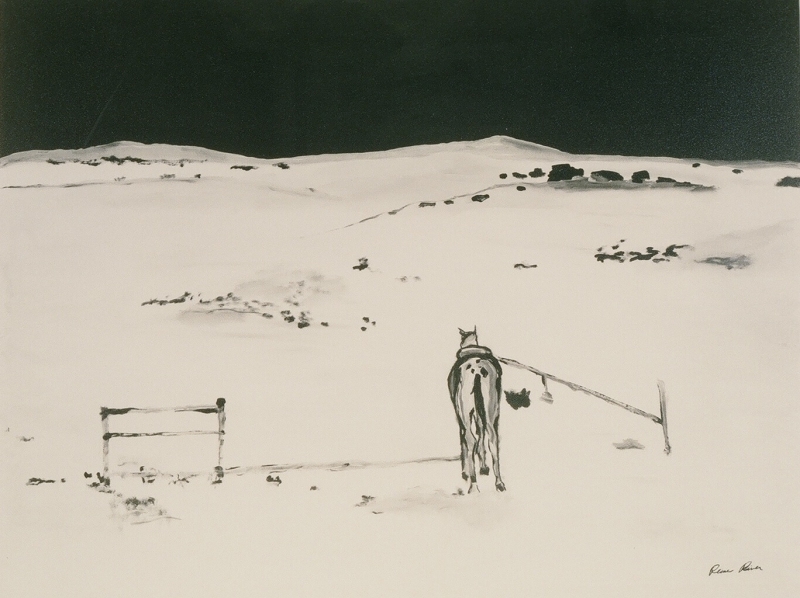 Landscape with a river running through and horses in the far background. Acrylic On Paper